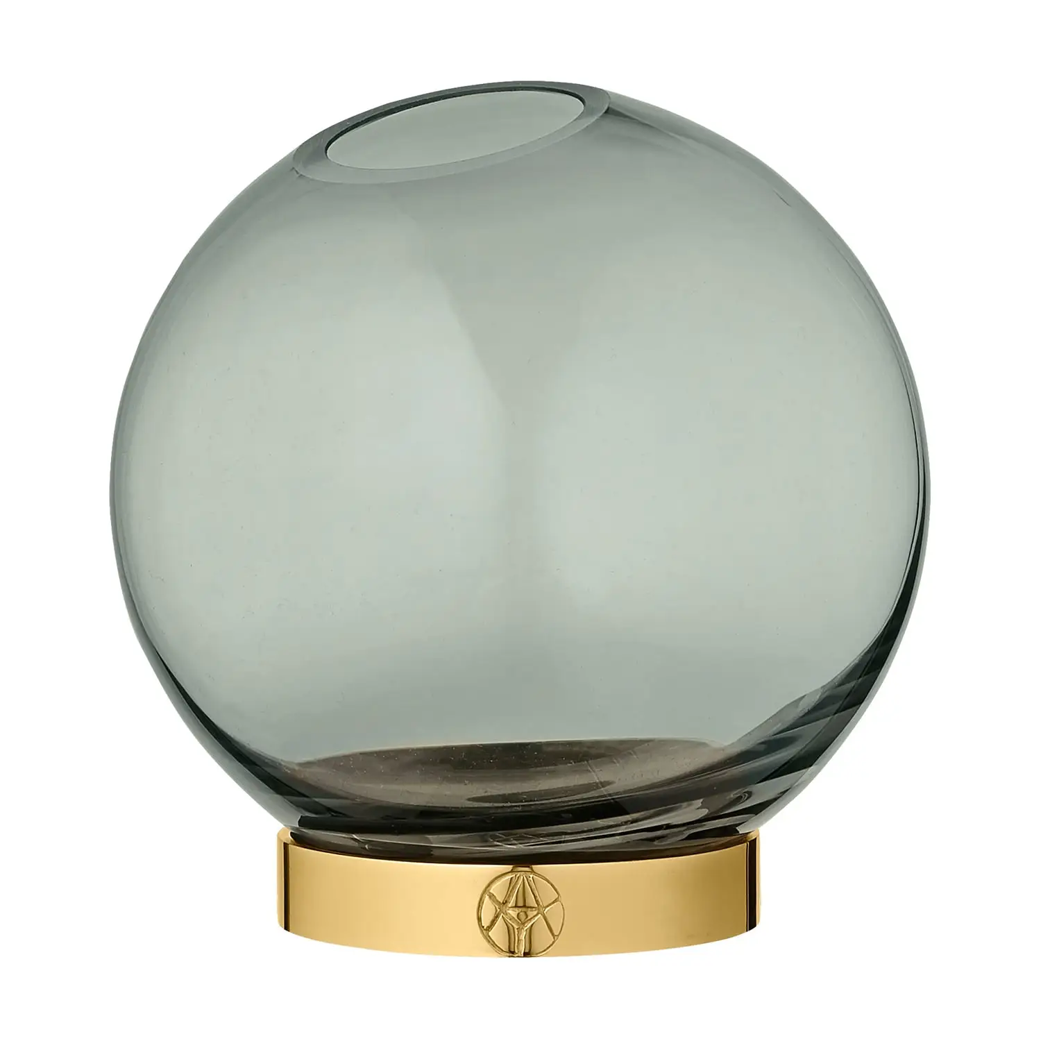 Globe is available in different colours and three sizes. This one has green toned glass which goes great together with the warm toned brass. The vases are ideal for flowers and plants, but they also fit for more creative solutions. The large and medium-sized Globes can be used for tealight candles, and the smallest is excellent for room scents, and is also perfect for single flowers.