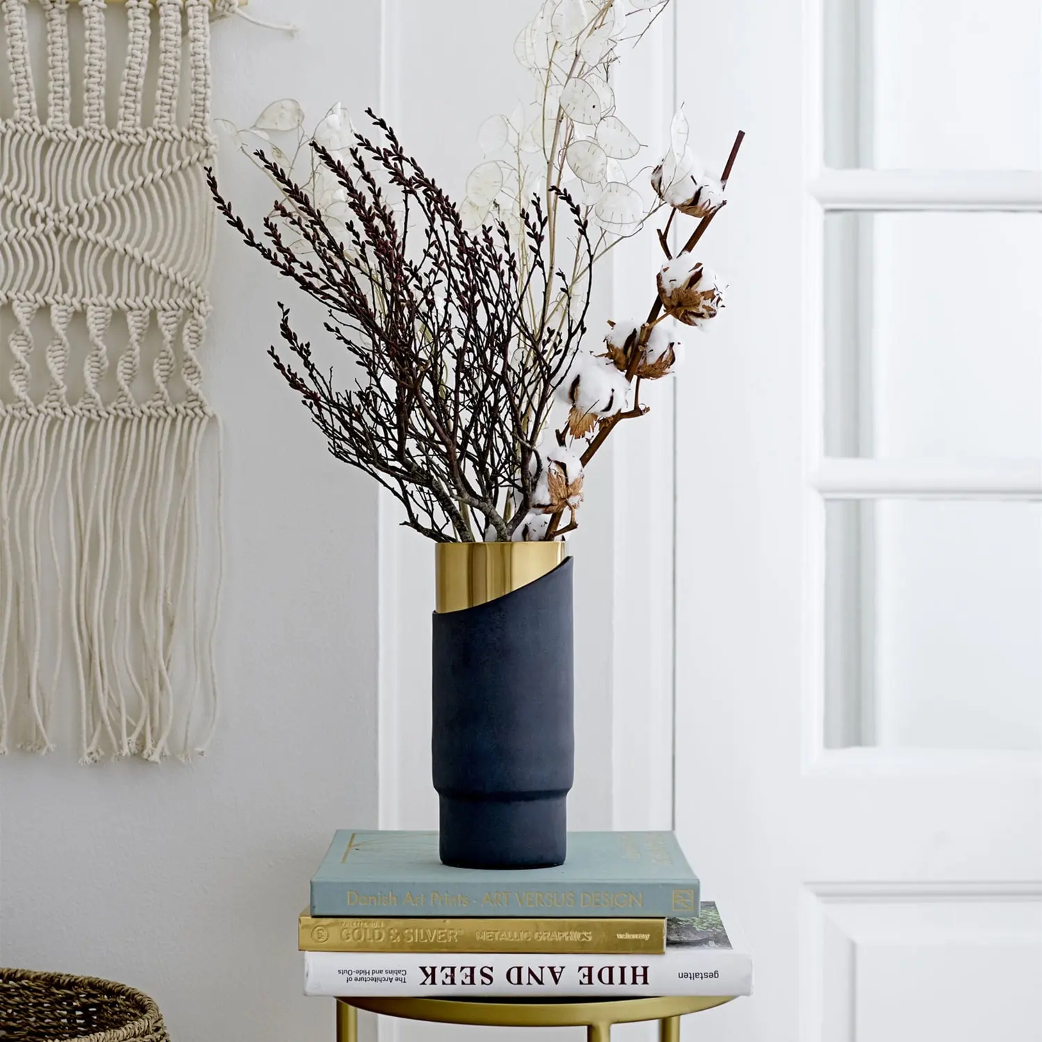 Vase from Bloomingville. This is a two-piece vase with one vase in gold and the other one in blue-colored aluminum. Together, it creates a different and stylish vase, which fits like a decorative detail in itself or with flowers.