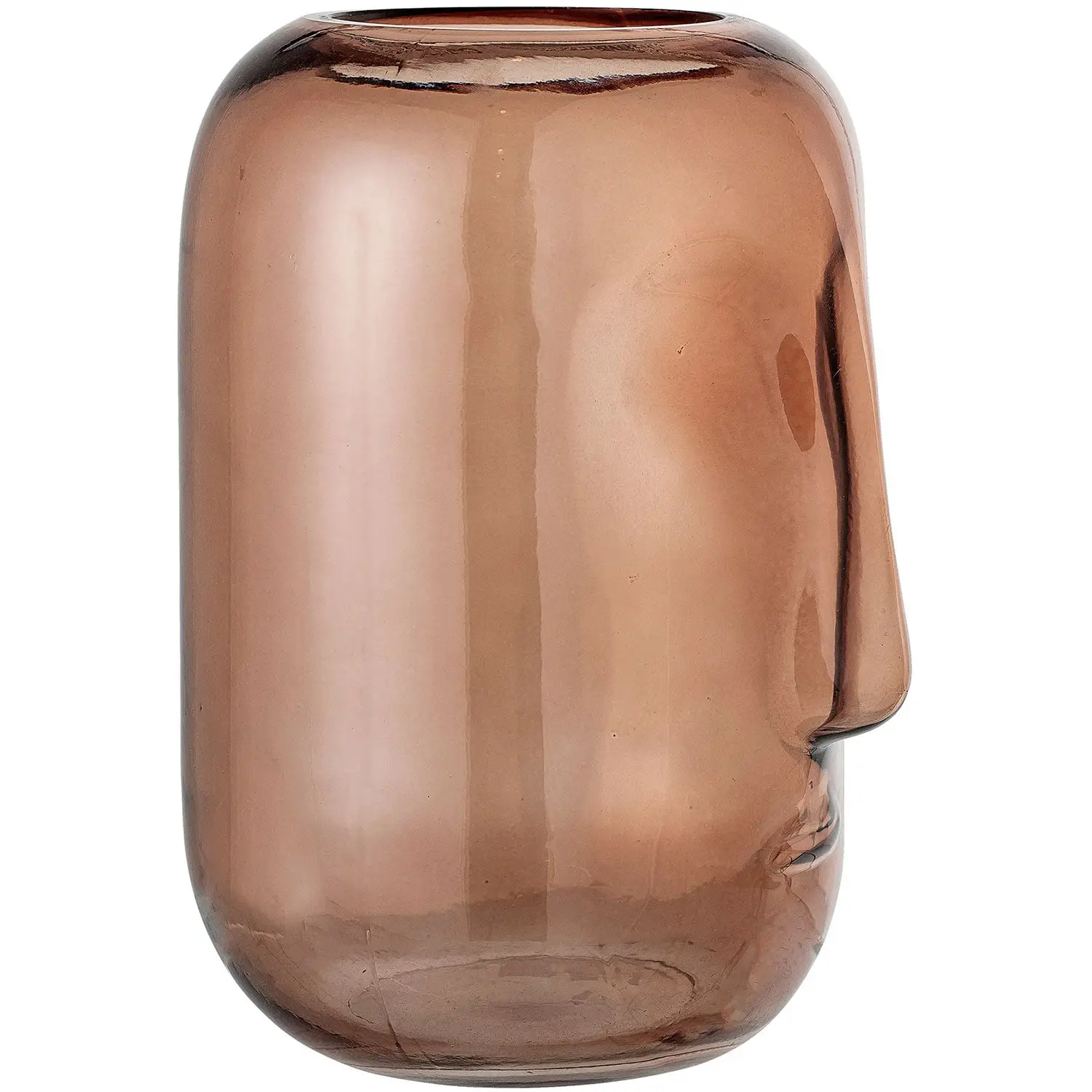 A glass vase from Bloomingville, shaped like a face. Just as decorative with flowers as without.