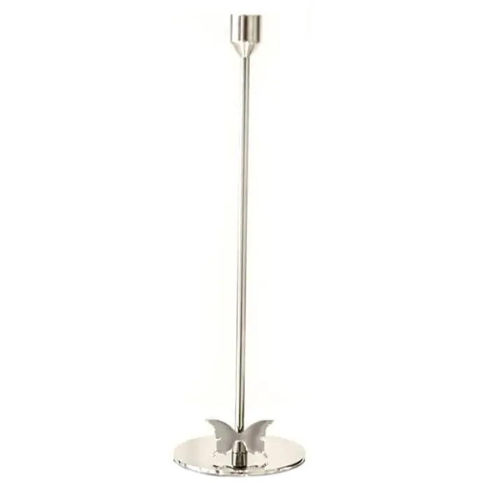 This candle holder has a stylish design with a butterfly that becomes a nice touch on the candlestick. Available in two different sizes.