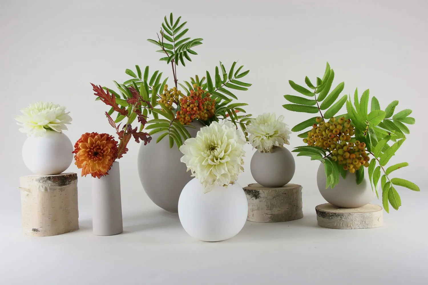 The vase by Cooee Design has an elegant design in ceramic with a round shape perfect for cut flowers and branches. Choose between different colours.