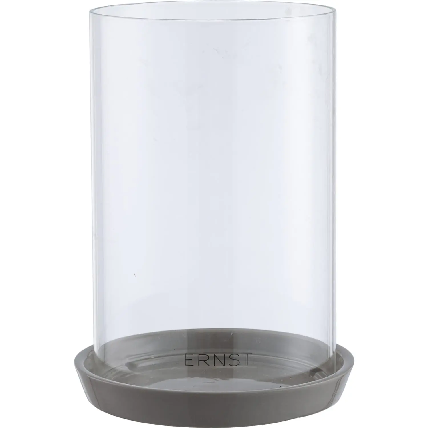 Candle holder by Swedish designer Ernst Kirchsteiger. Suitable for pillar candles and has a spike that keeps the candle in place. The plate is made of stoneware with a matt finish. Clear glass.