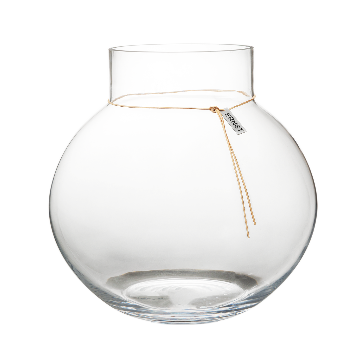 Ernst glass vase has a leather strap with an Ernst logo that gives a rustic feeling. The vase has a simple design and a Scandinavian expression that make the vase look good in every home.