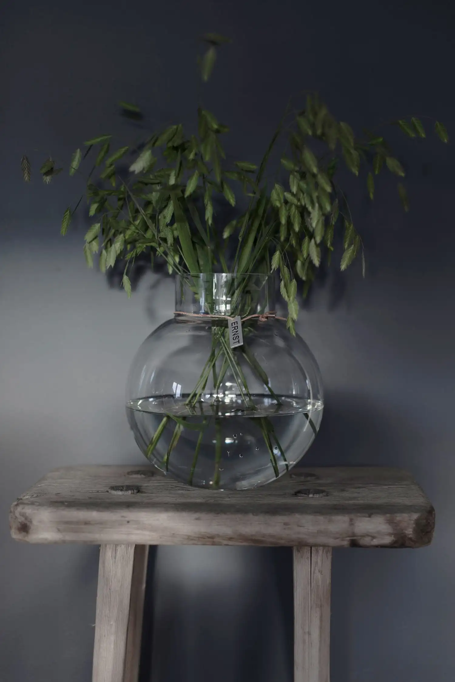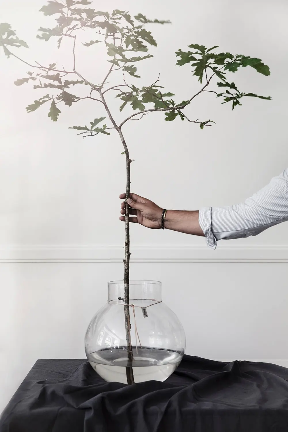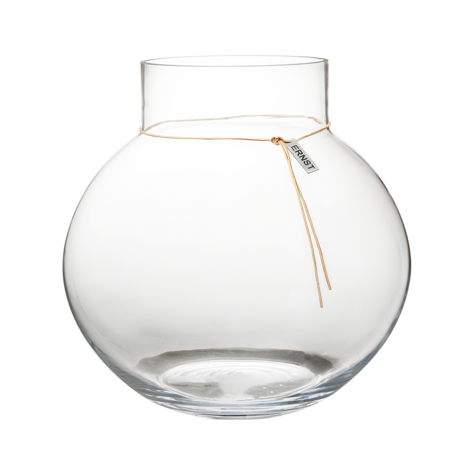 Ernst glass vase has a leather strap with an Ernst logo that gives a rustic feeling. The vase has a simple design and a Scandinavian expression that make the vase look good in every home.