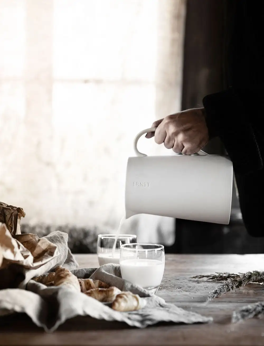 Stoneware pitcher in a wonderful rustic design by Swedish designer, cook and decorator Ernst Kirchsteiger. The jug is perfect for serving water, lemonade, sangria and other beverages of your choice. Or you can use it as a vase and create beautiful flower arrangements.