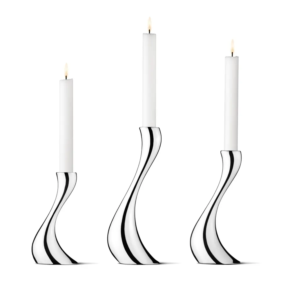 Since the collection was presented in 2008,ย Cobra has become a major favourite. The shapes create a sense of elegance and are a modern variant of the classic, distinctive and straight candle holder. The Cobra candlestick has an eye-catching expression and becomes extra nice together in a group of three. Together with these three candlesticks, you can create an arrangement that raises the room to a new level. Candles included.