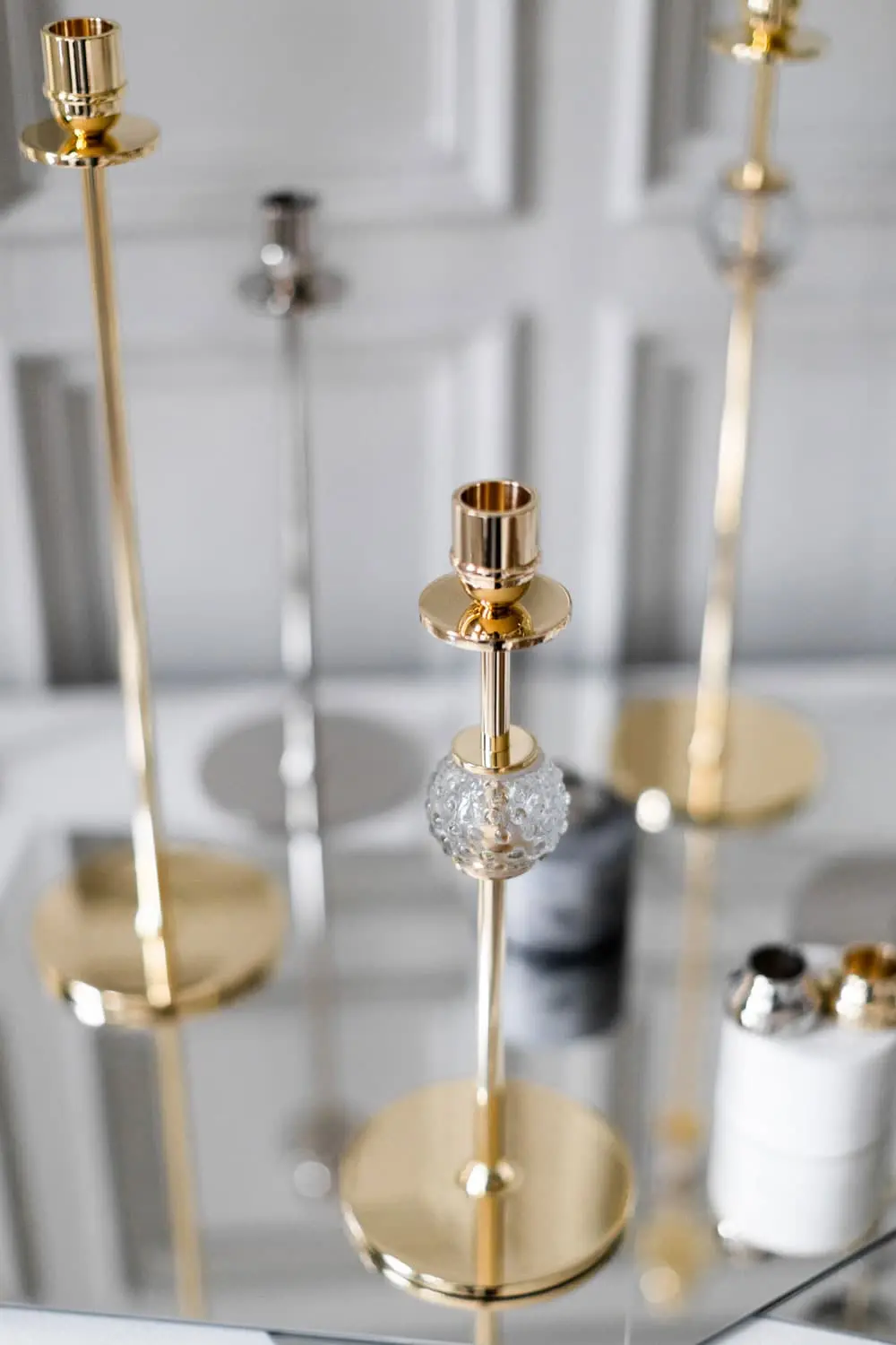 Beautiful solid brass candlestick, handmade with a decorative and elegant glass ball. Hilke is luxurious Swedish design with its roots in Italy – “Alba” is Italian for sunrise.