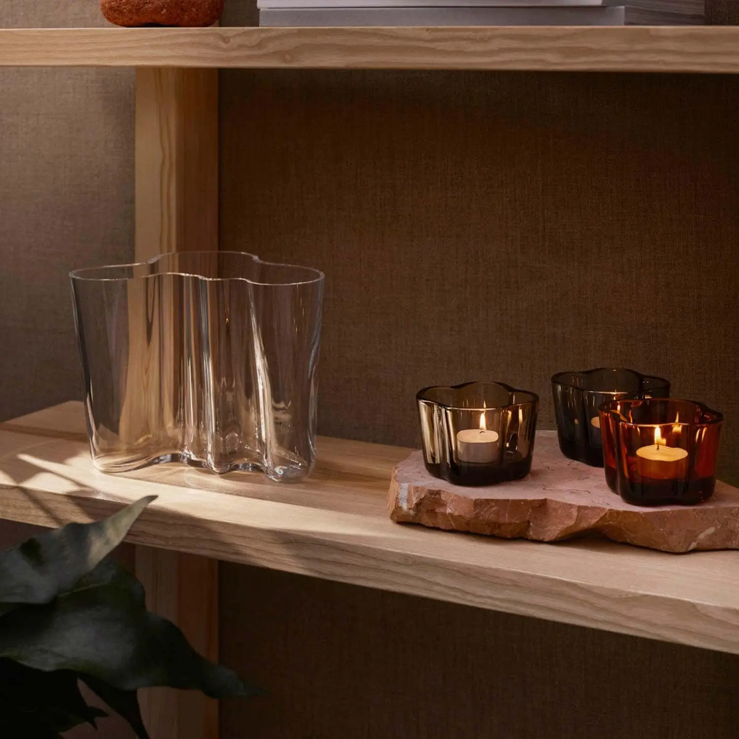 This votive from Iittala has been inspired by Alvar Aalto’s famous waveforms. The form has won design awards, and can also be found on vases and bowls for example.ย