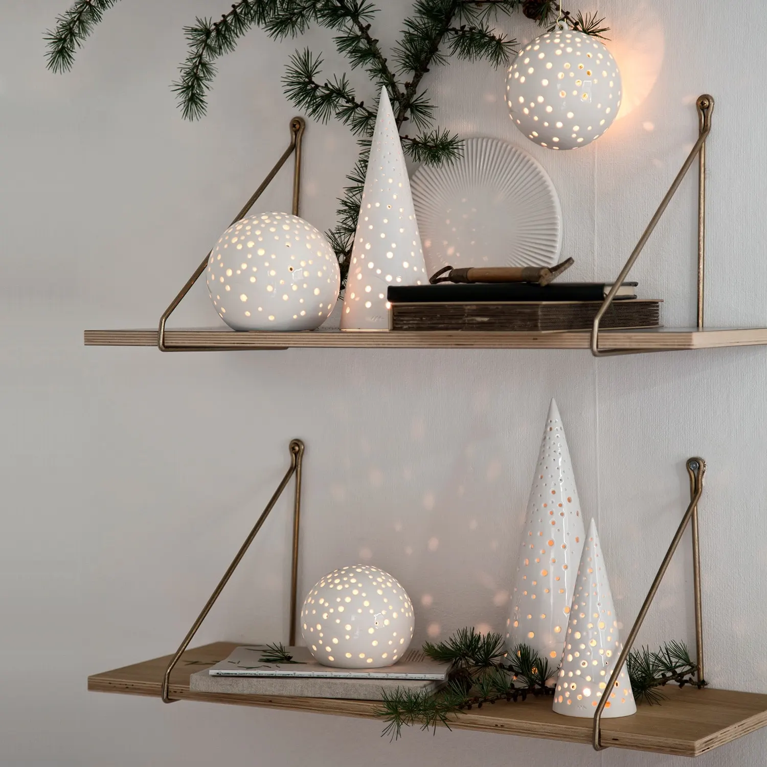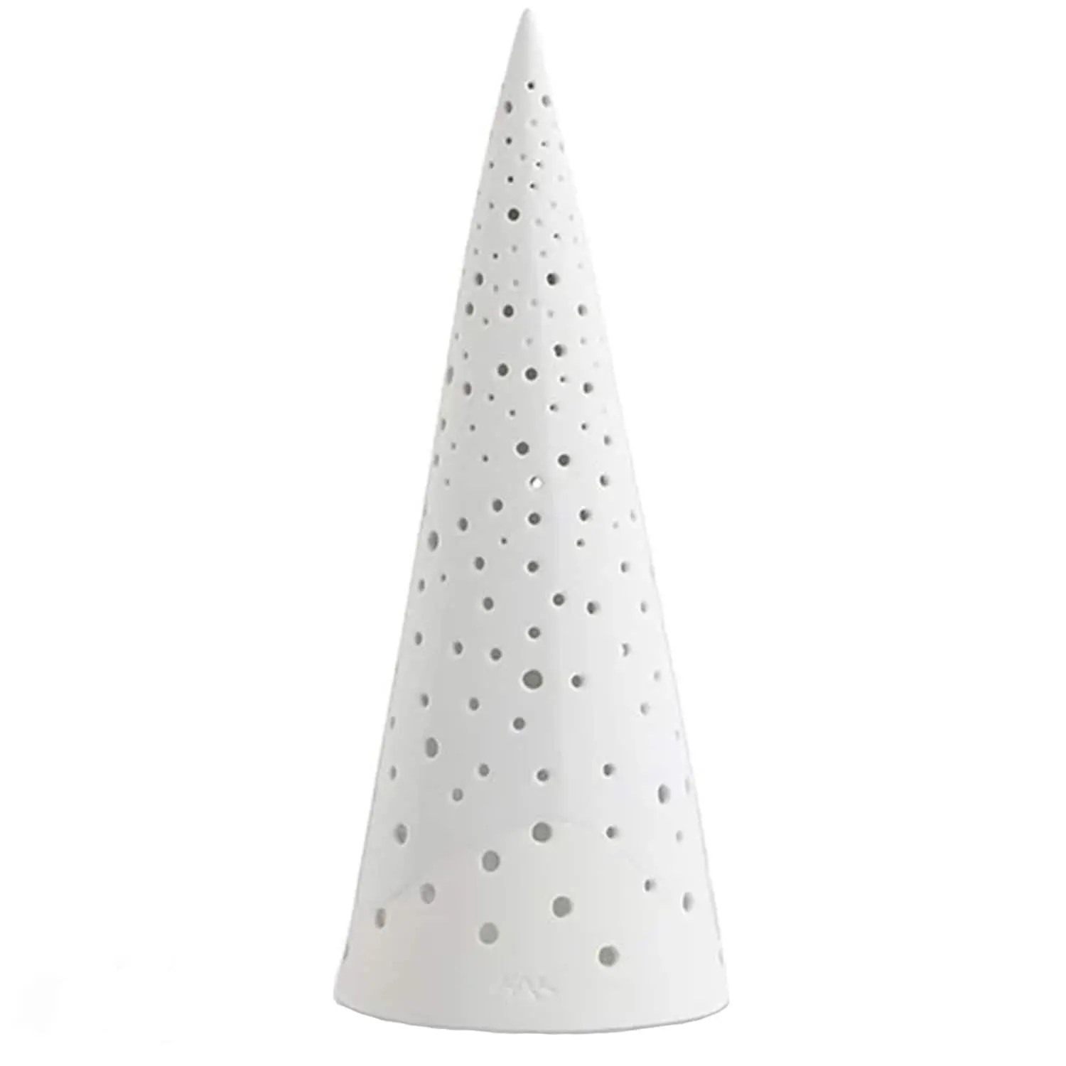 Nobili candle holder in a large size from Kähler. The inspiration for the candle holder comes from the frosty nights of the winter forest, where the shadows dance and the stars are reflected in the soft snow. When the light is lit, the light emanates from the small holes and creates a sparkling and cozy light effect. The candlelight is hand-decorated and is available in different colours.