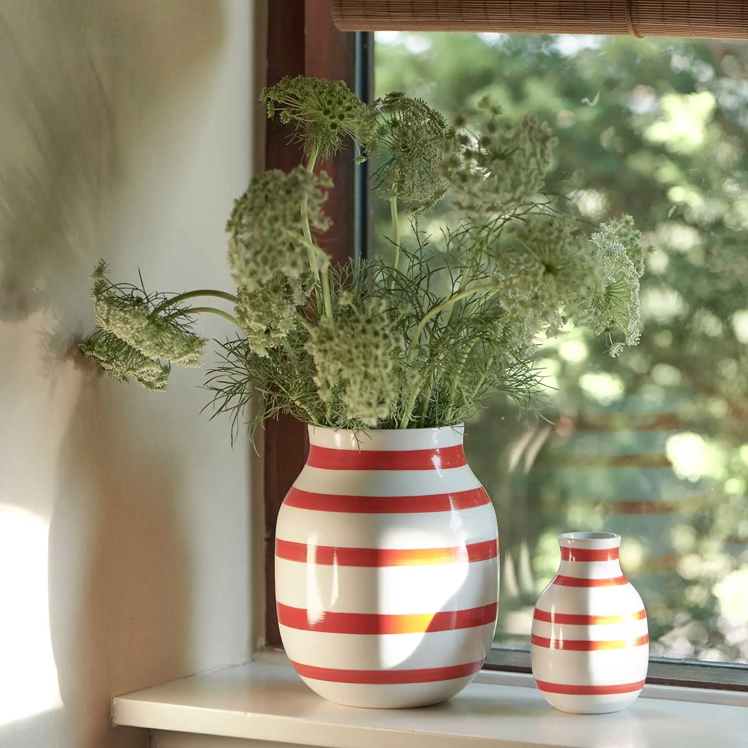 A striped vase with round soft shapes from Kähler. This vase has a design with a timeless expression and can be easily combined with other home details. Because the vase is hand painted, there may be variation in the width and colour of the strips, which also makes each vase unique. You find this vase in several sizes and colors.