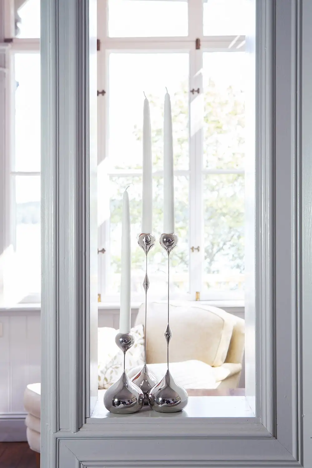 Avaliable with a decoration placed high or one place lower down on the candlestick.