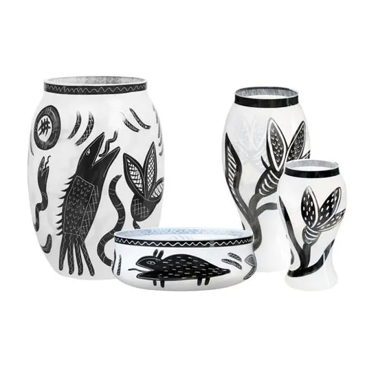 This white vase comes from the Caramba series and is designed with dramatic black snakes. The vase is handmade, which makes every vase unique.