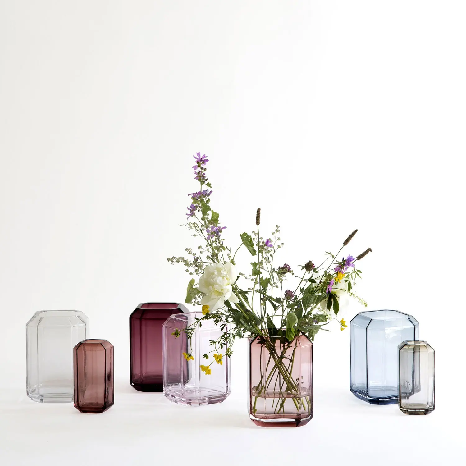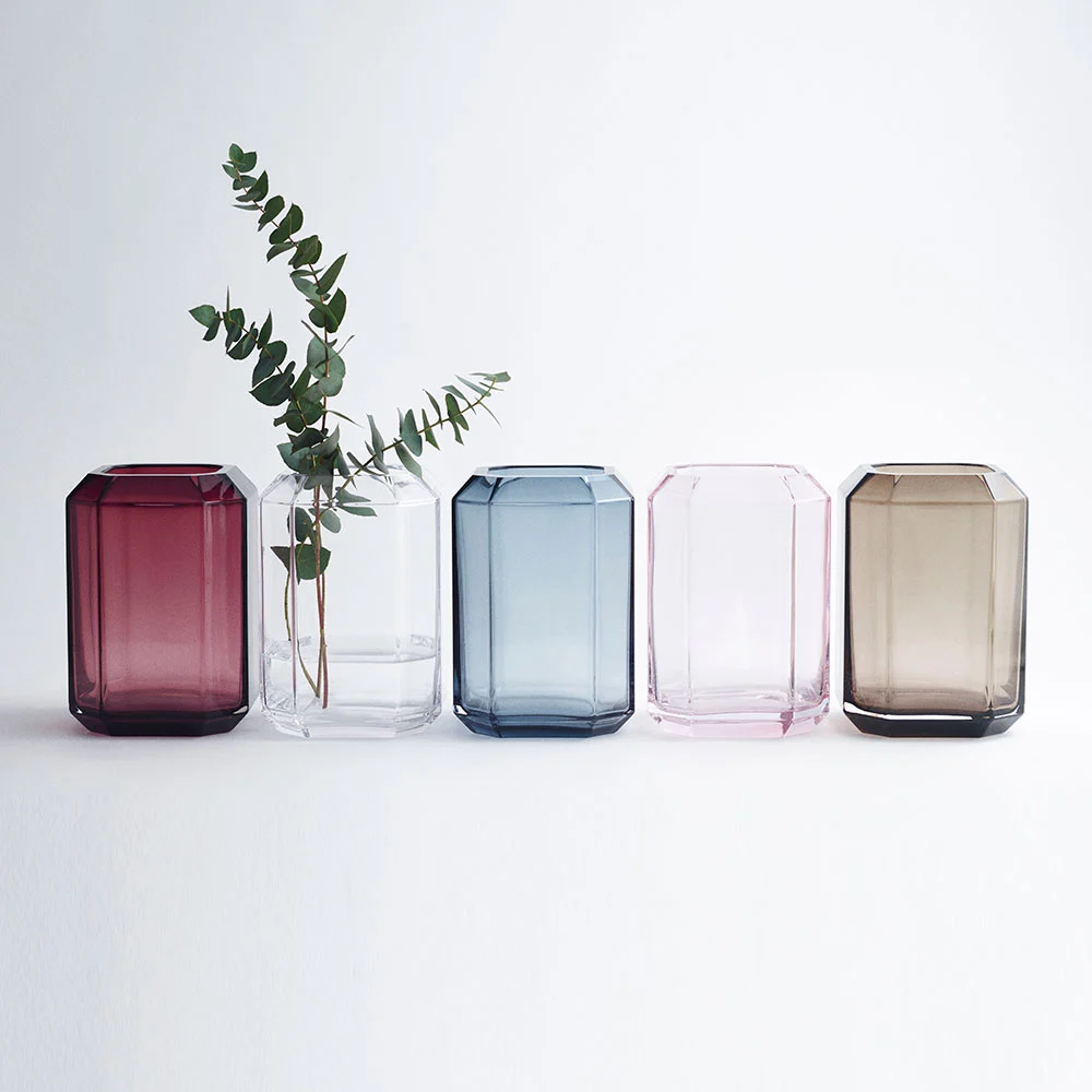 Jewel is a glass series with beautiful vases in mouth-blown glass from Louise Roe. The vase is formed with sharp edges that break the light into a beautiful constellation. It will certainly appear as a stylish decorative detail in your home, in its own simplicity or with a bouquet of flowers.