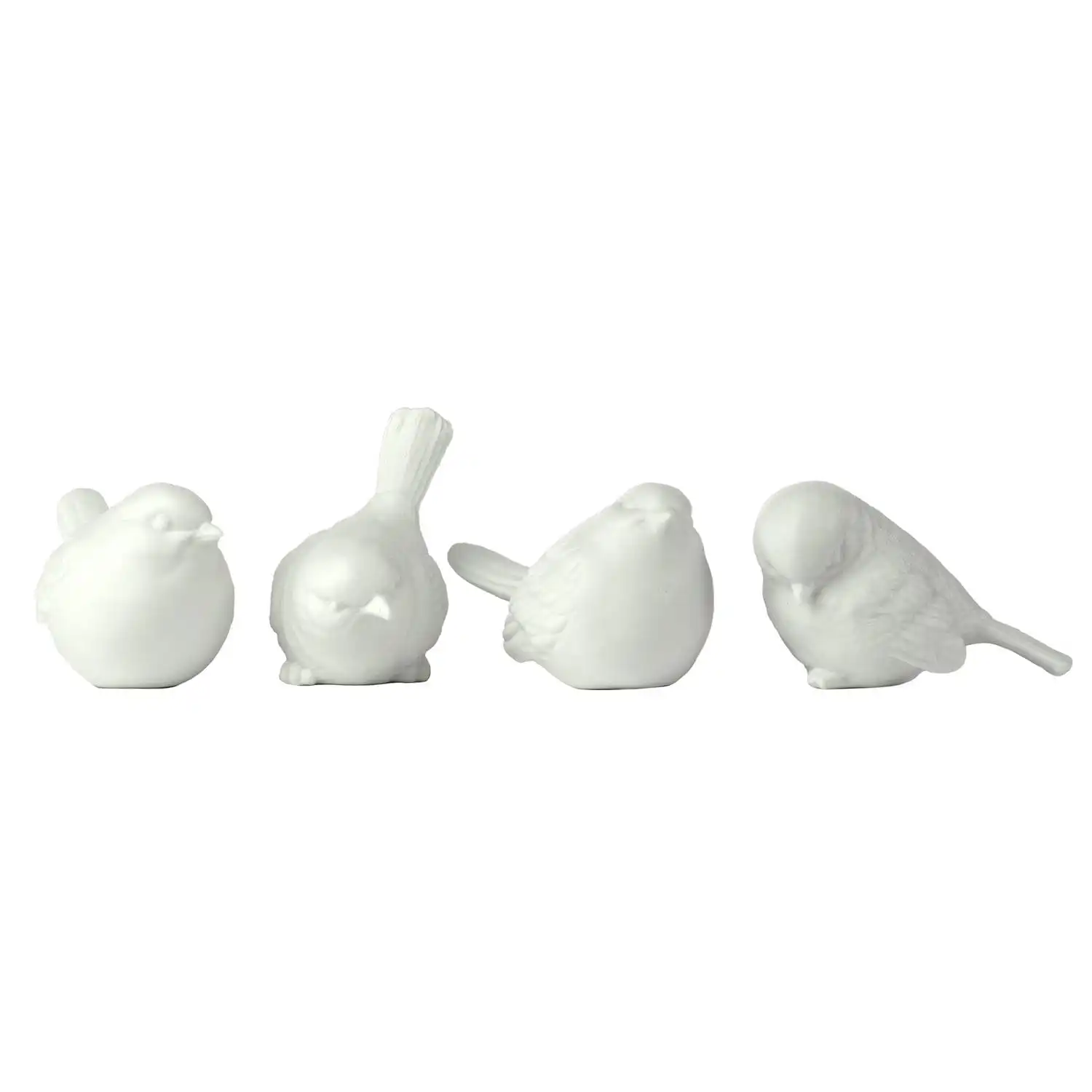 Sparrow porcelain birds from Pols Potten. These 4 decorative sparrows are made from porcelain. They are actual size, and each has a different pose. Place them on your bookshelf, window sill or bedside table. They are the perfect addition wherever you place them.