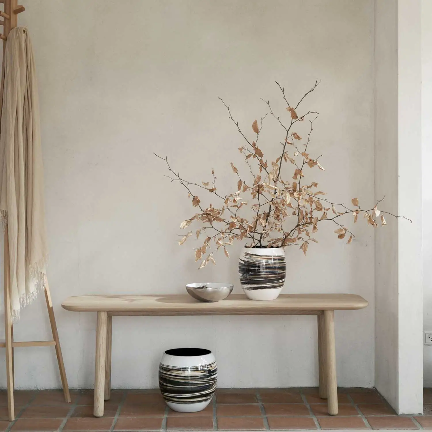 Stockholm Lignum Vase from Stelton. This is a timeless vase with artistic pattern, designed by the duo consisting of Prince Carl-Philip Bernadotte and the designer Oscar Kylberg. Just as the name suggests, the inspiration comes from Stockholm, and the archipelago. The word Lignum means wood, which is reflected in the colours. It is hand painted and can therefore vary slightly in appearance, making each vase unique. Perfect to use as both vase and decoration.